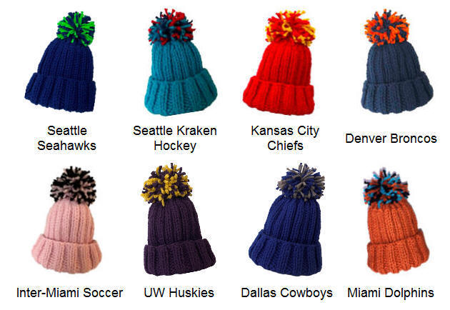 specializes in hand-knitted hats in various team colors, so fans can proudly