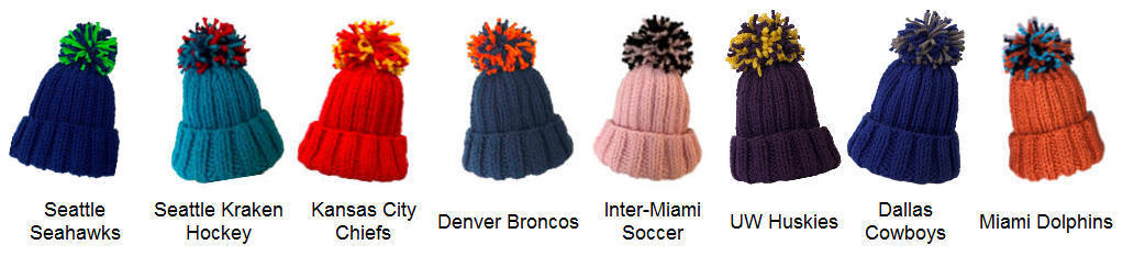 specializes in hand-knitted hats in various team colors, so fans can proudly